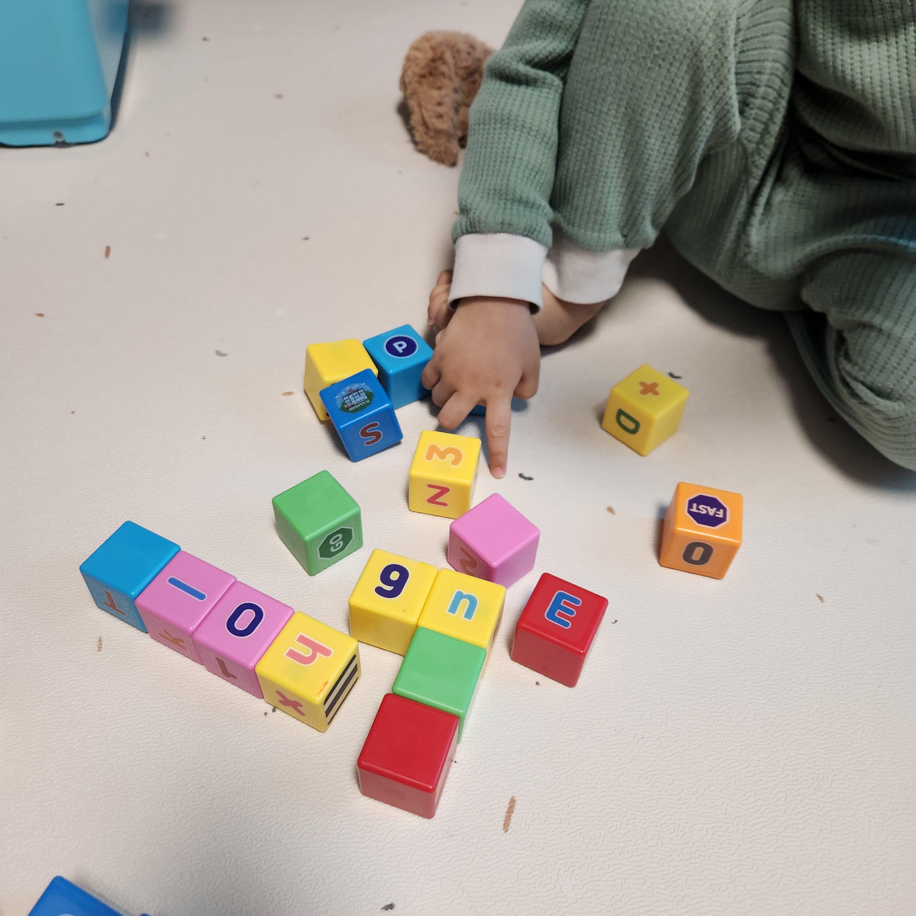 우리 아들은 블럭을 쥐며 “이건 5야”, “이게 더 커!” 같은 말을 자주 해요. 이런 표현을 반복하면서 언어 능력도 자연스럽게 자라고 있습니다.